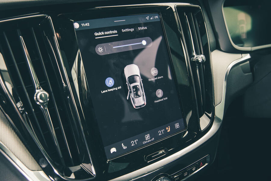That said, the ‘contextual’ bar of everchanging icons, depending on which app you’re using, still irks. Where is the consistency? Elsewhere, the V60 remains a smaller car than you might expect, so far as capacity goes. Its low roof is partly to blame, and even in the B4 the boot floor is high due to the 48V battery. The bay is longer than that of a 3 Series Touring, mind.